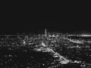 The San Francisco Skyline At Night As Seen In Black And White Wallpaper -