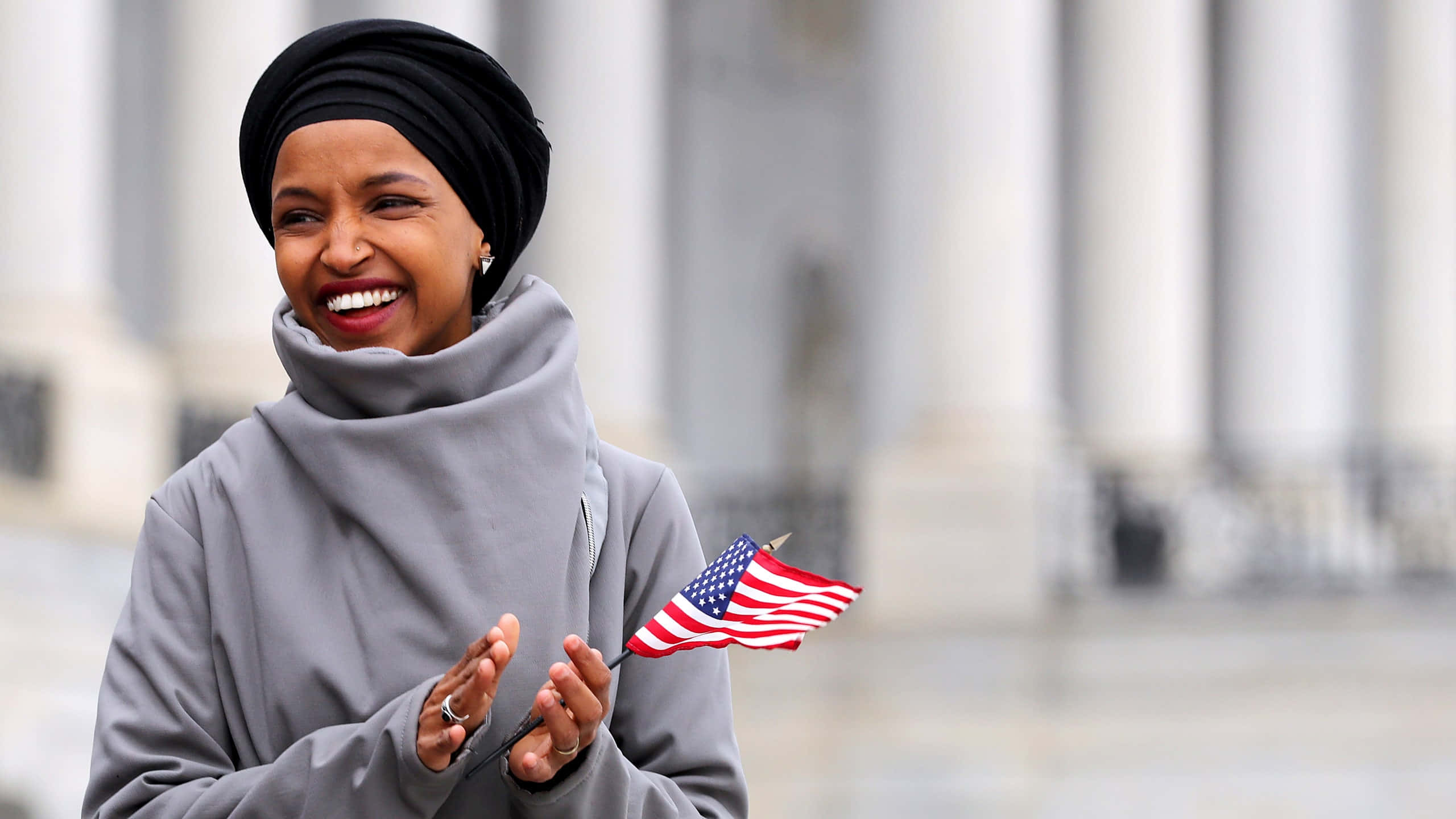 Ilhan Omar Holding A Tiny Flag Wallpaper -