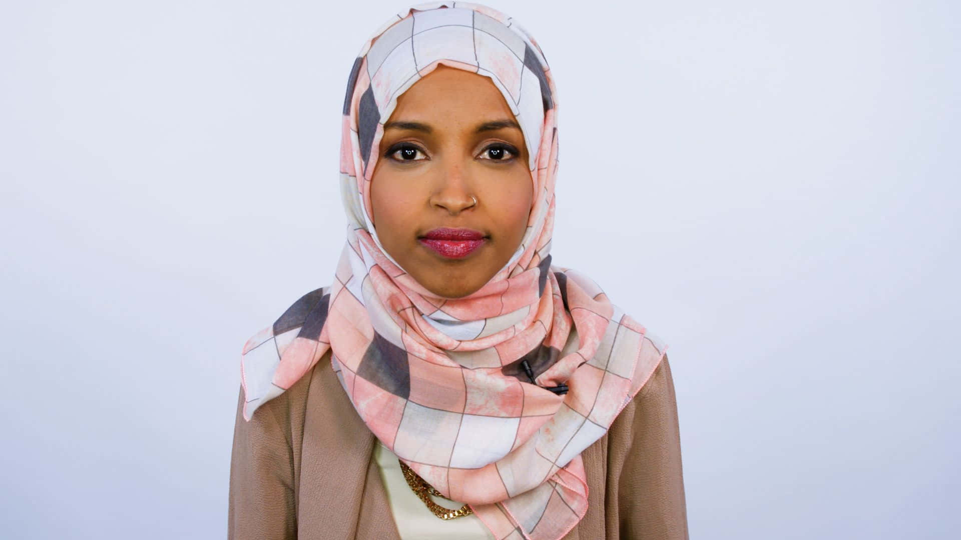 "congresswoman Ilhan Omar Posing With Pearl Earrings" Wallpaper -