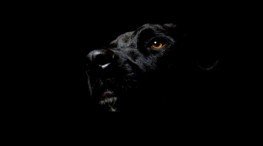 Image "a Black Pitbull Staring Contently In The Distance" Wallpaper -