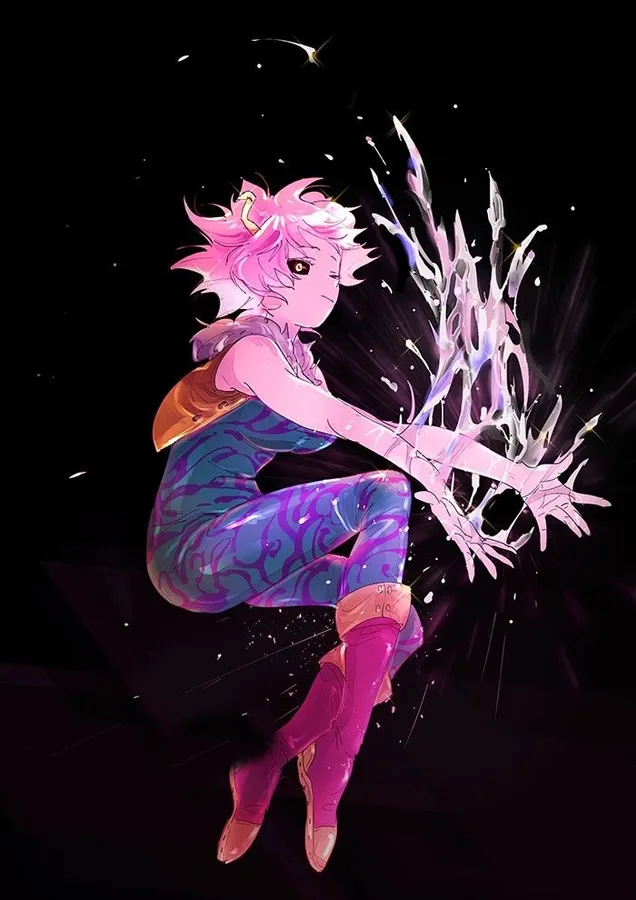 My Hero Academia Character Mina Ashido With Pink Silhouette Manga Wallpaper -