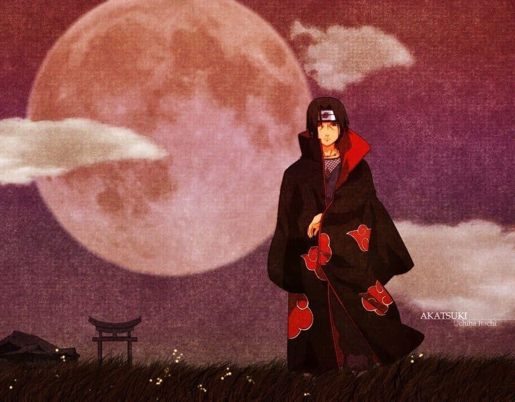 Itachi Uchiha Underthe Crimson Moon Wallpaper -
