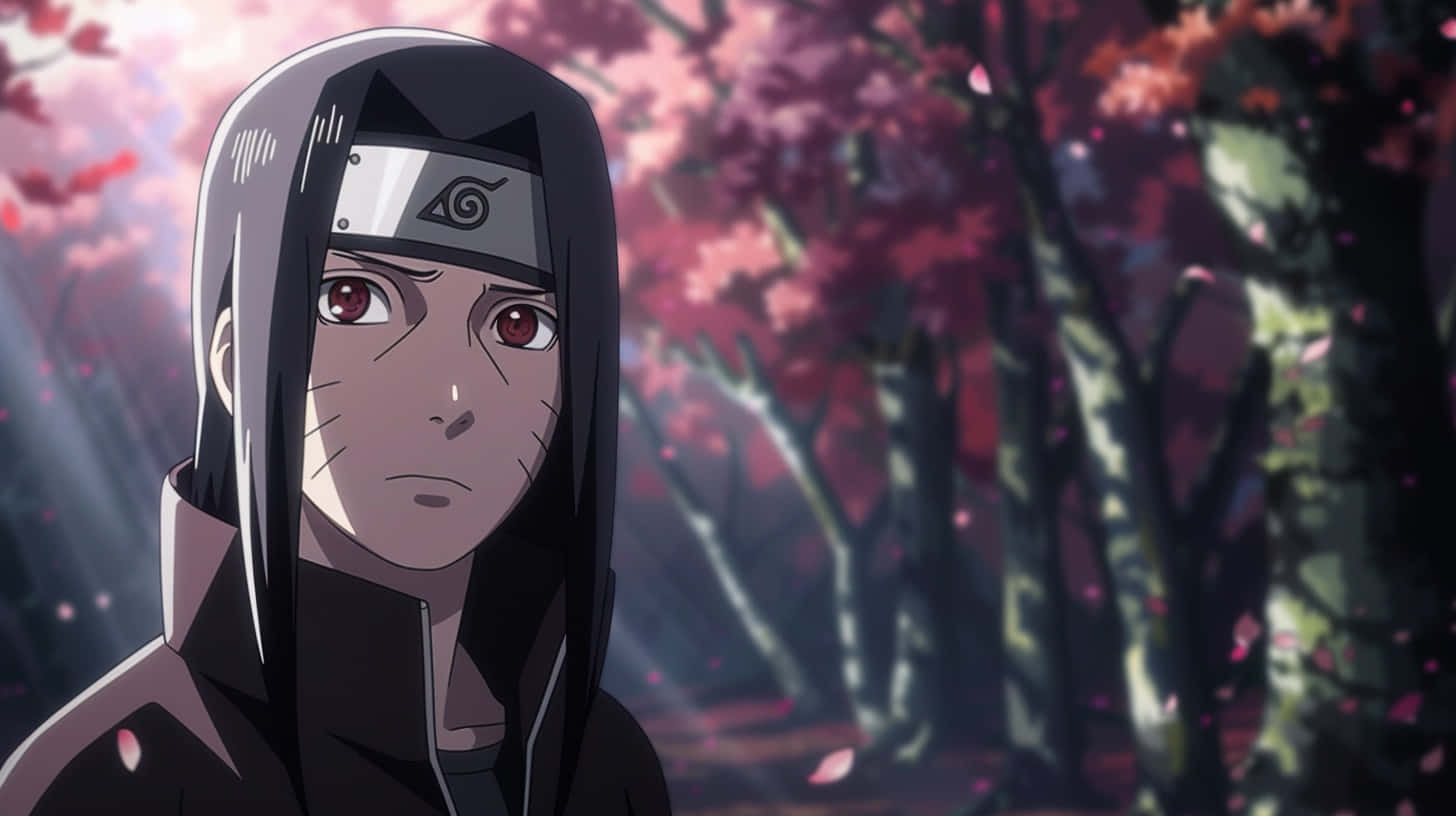 Itachi Uchiha Amidst Falling Petals Wallpaper -
