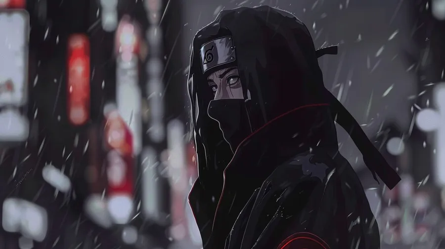 Itachi Uchiha Hooded Figure Anime Scene Wallpaper -