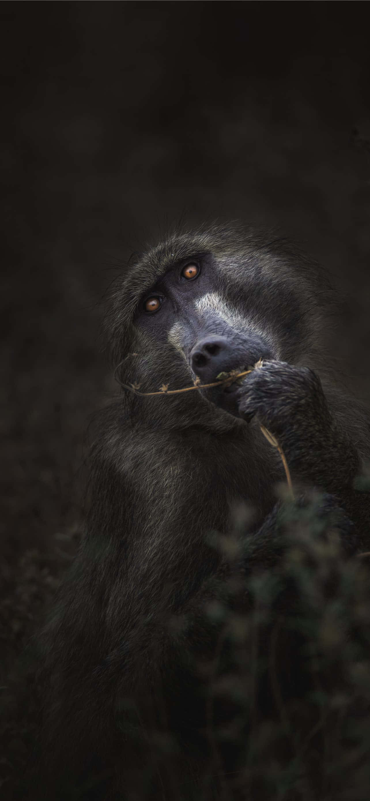 A Monkey Enjoying Its New Iphone Wallpaper -