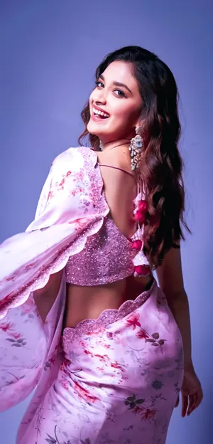 Pink Keerthi Suresh Saree Wallpaper -