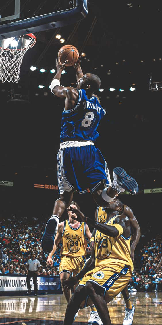 Kobe Bryant Showcases His Dunking Abilities During An Nba Game Wallpaper -