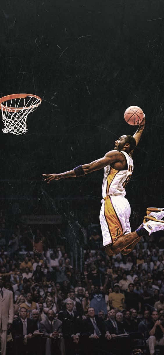 Kobe Bryant Showcases His Dunking Abilities During An Nba Game Wallpaper -