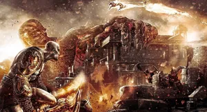 Kratos Battling The Titans In "god Of War Iii" Wallpaper -