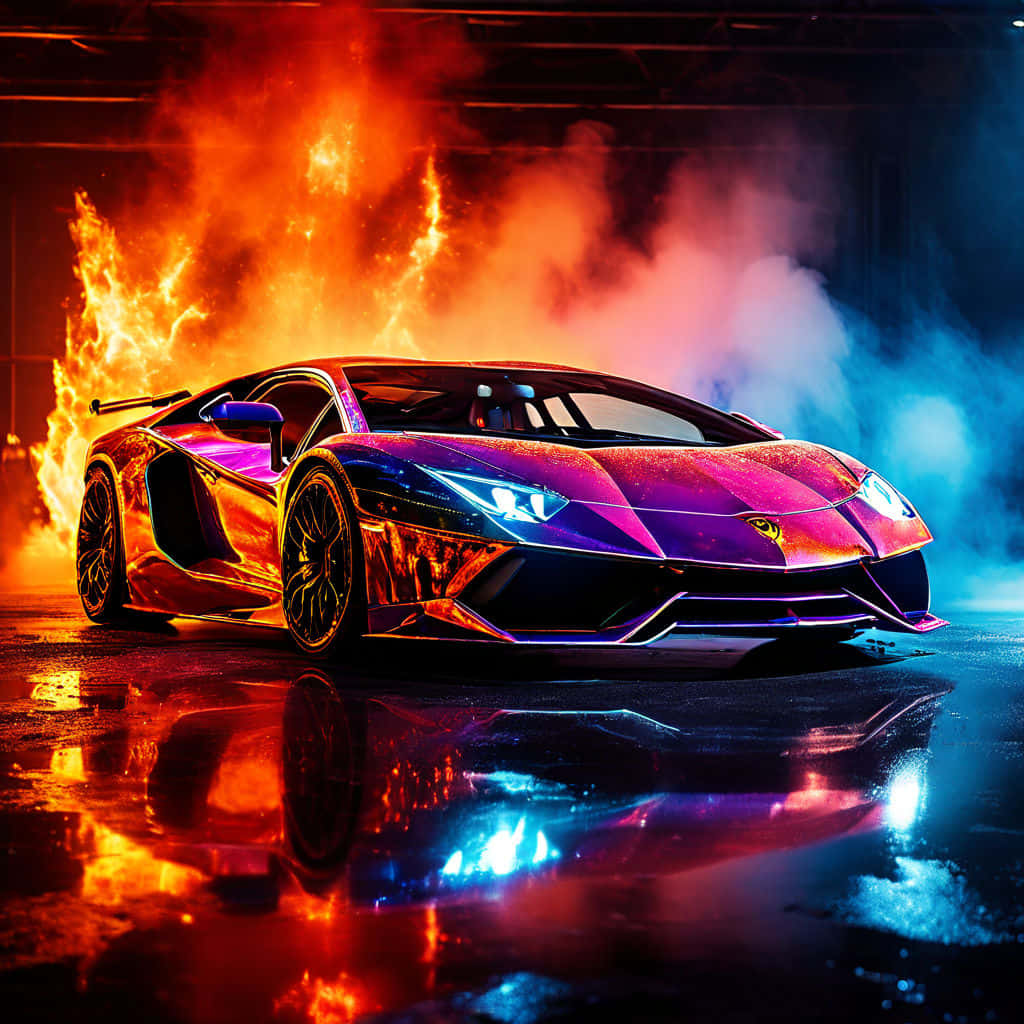 Lamborghini On Fire Rainbow Aesthetic Wallpaper -