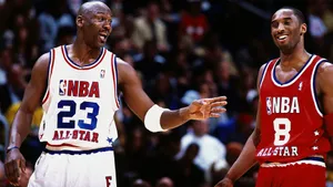 “legends On The Court: Michael Jordan And Kobe Bryant” Wallpaper