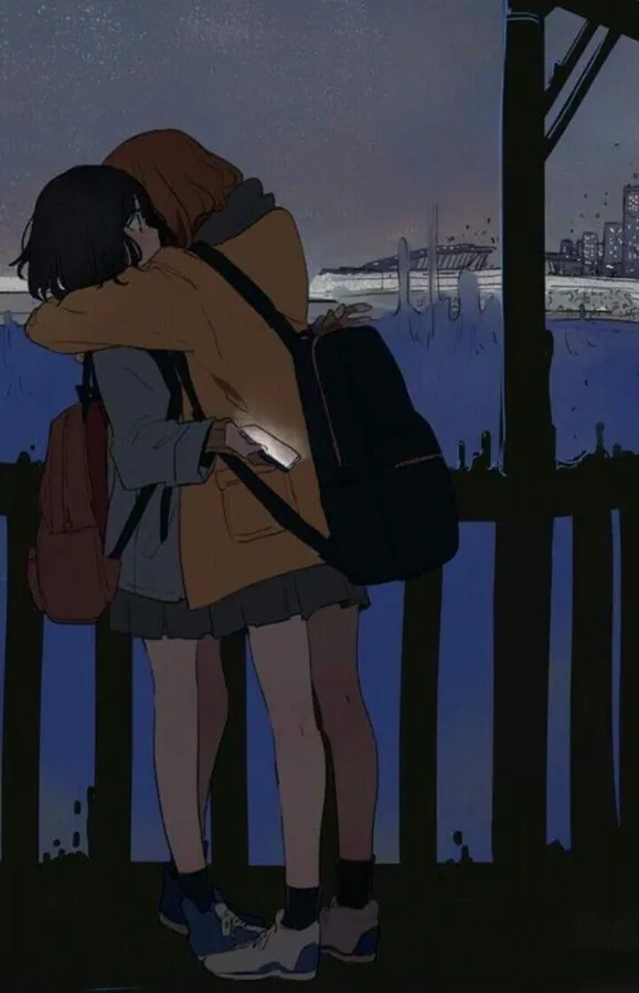Two Anime Girls Sitting On A Chair And Hugging Wallpaper -