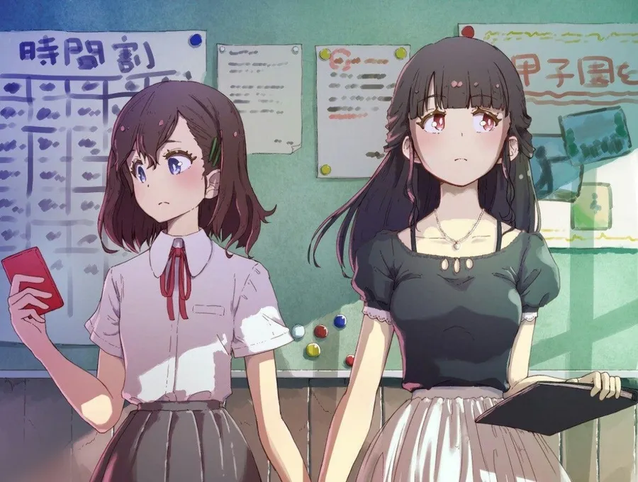 Two Gorgeous Lesbian Anime Characters Ready For Love Adventure Wallpaper -