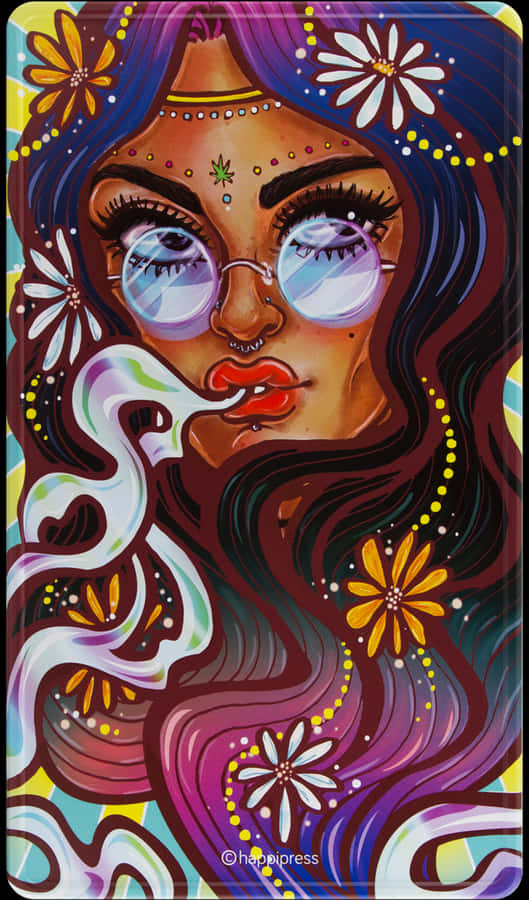 Image A Playful And Colorful Scene Of A Happy Trippy Hippie Wallpaper -