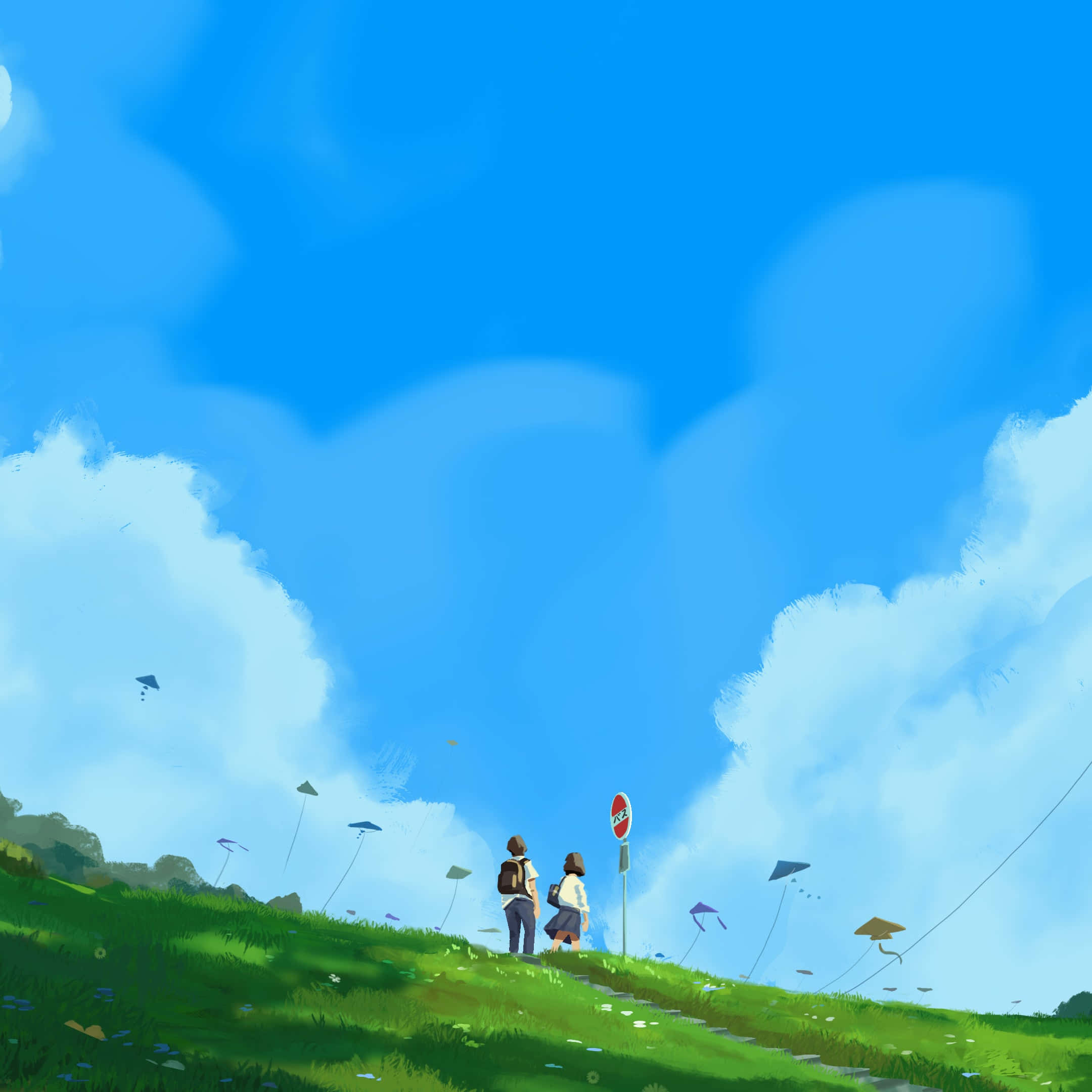 Related Lo Fi Anime Chill Couple Watching Flying Kites Wallpaper