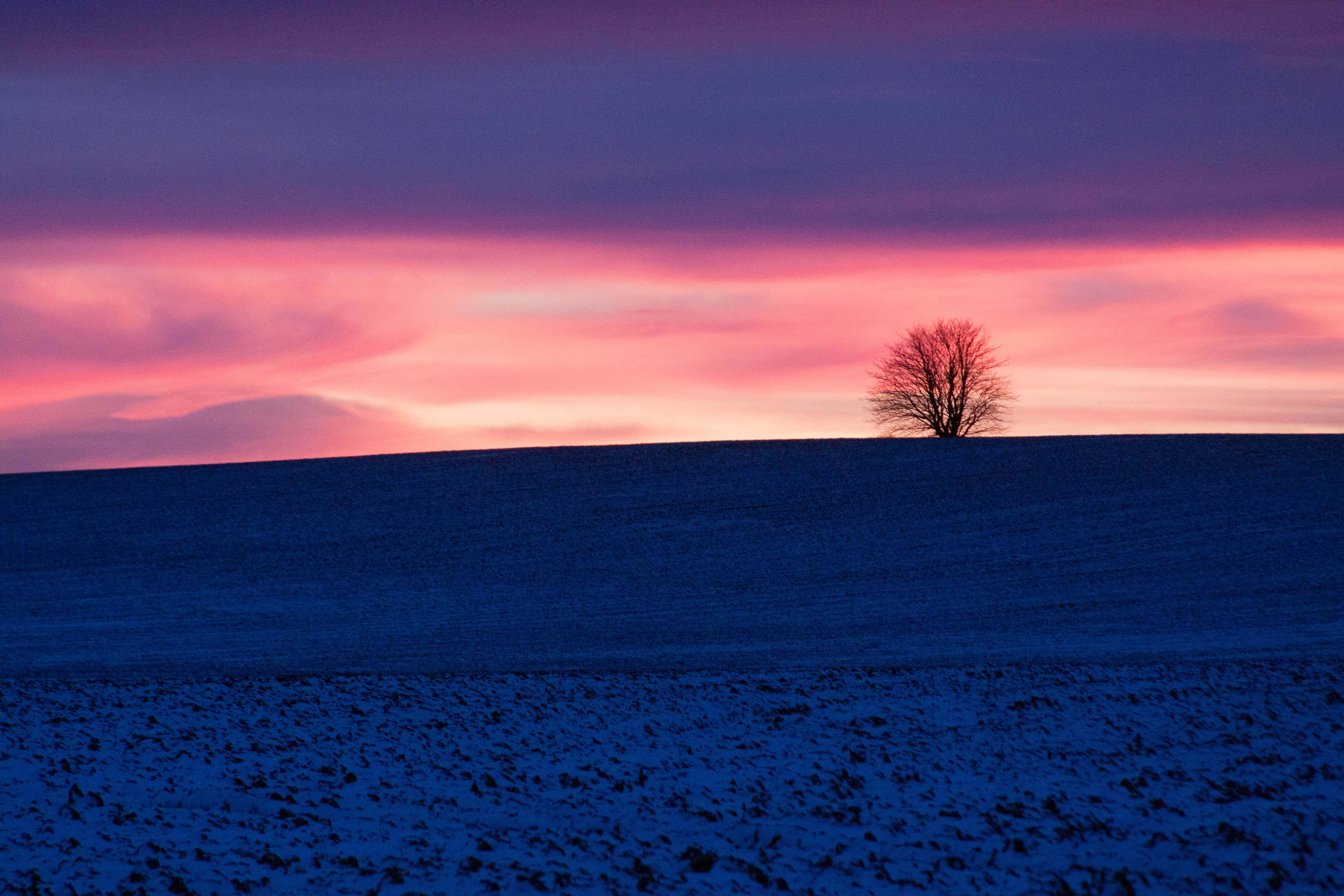 Related Lone Tree Under The Blue And Purple Sunset Wallpaper