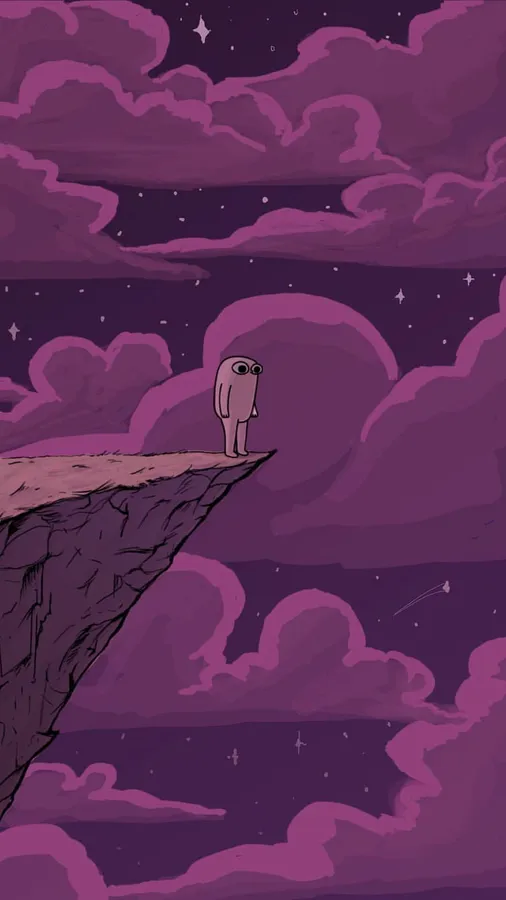 Lonely Cartoon Character Cliff Edge Night Sky Wallpaper