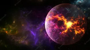 A Magnificent Multi-colored Galaxy Planet Illuminated By The Bright Starry Sky Wallpaper -