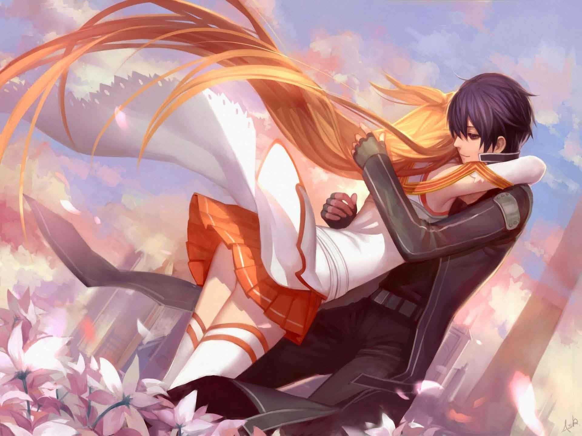 Adorable Anime Couple In A Dreamy Embrace Wallpaper -