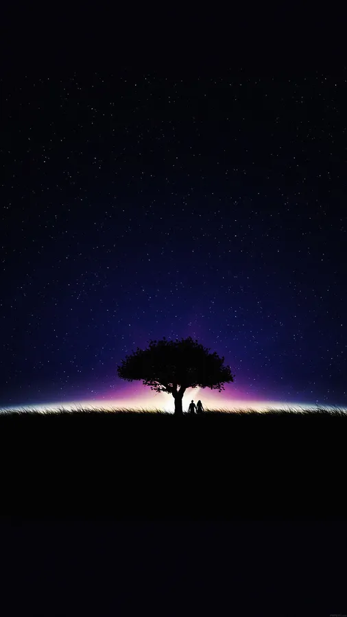 Lovers Under A Tree In Dark Starry Night Wallpaper