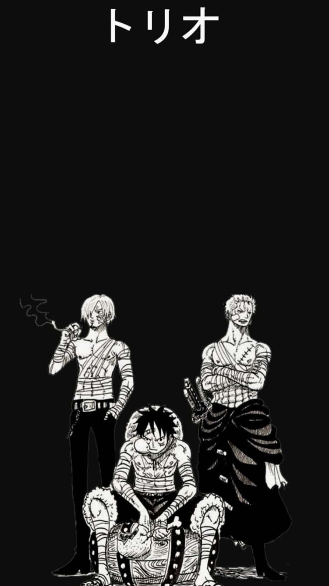 Luffy The Pirate King Against A Black And White Background Wallpaper -