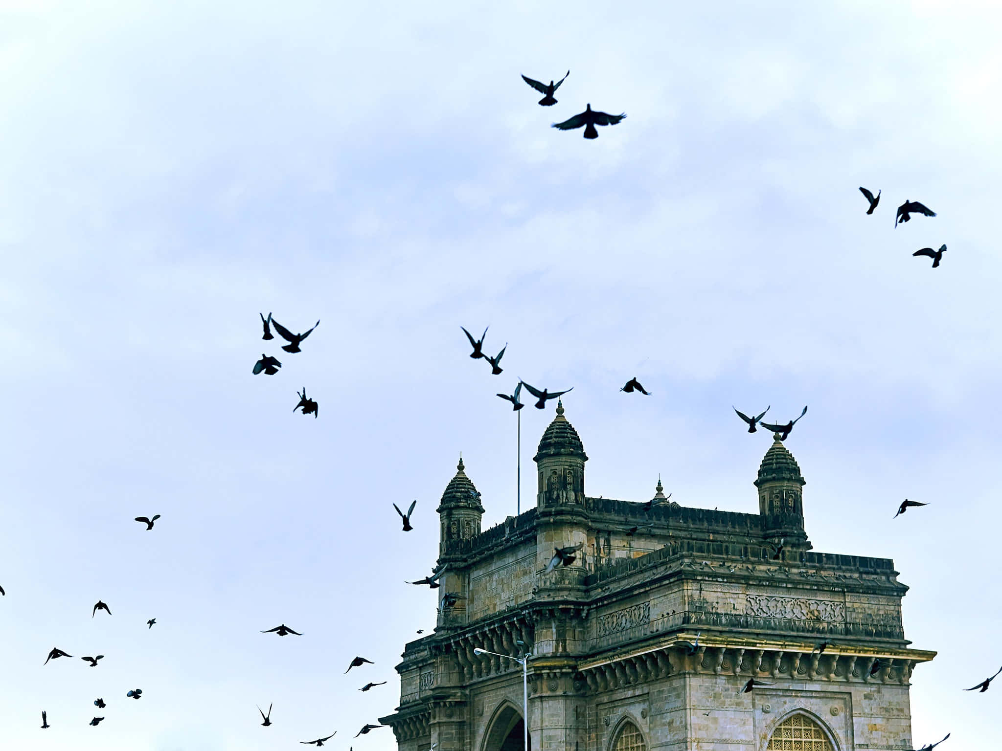 "sunset At The Gateway Of India With Birds In Flight" Wallpaper -