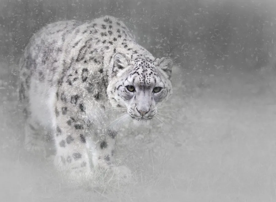 A Snow Leopard Stalking Its Prey In The Snow Wallpaper -