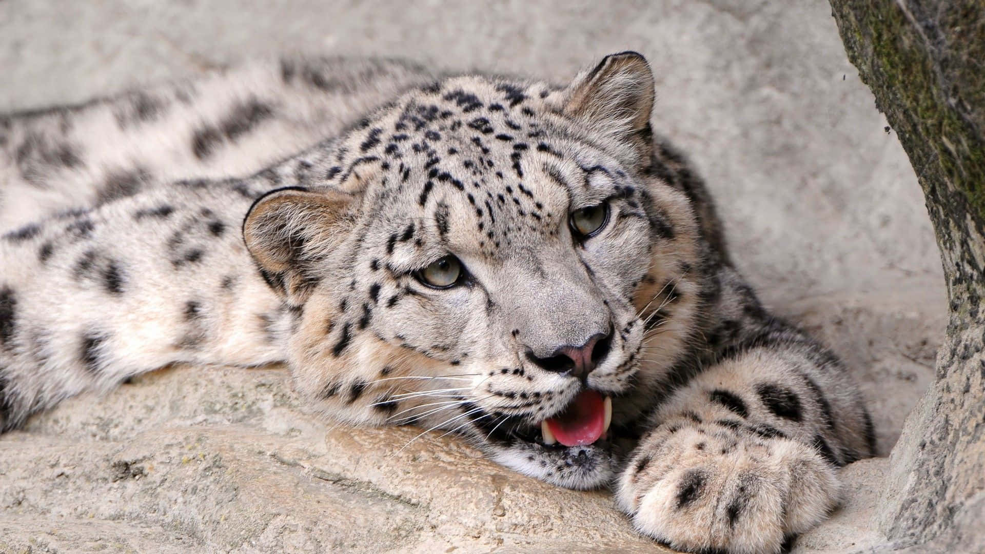 Majestic Snow Leopard Bathing In Mid-day Sun Wallpaper -