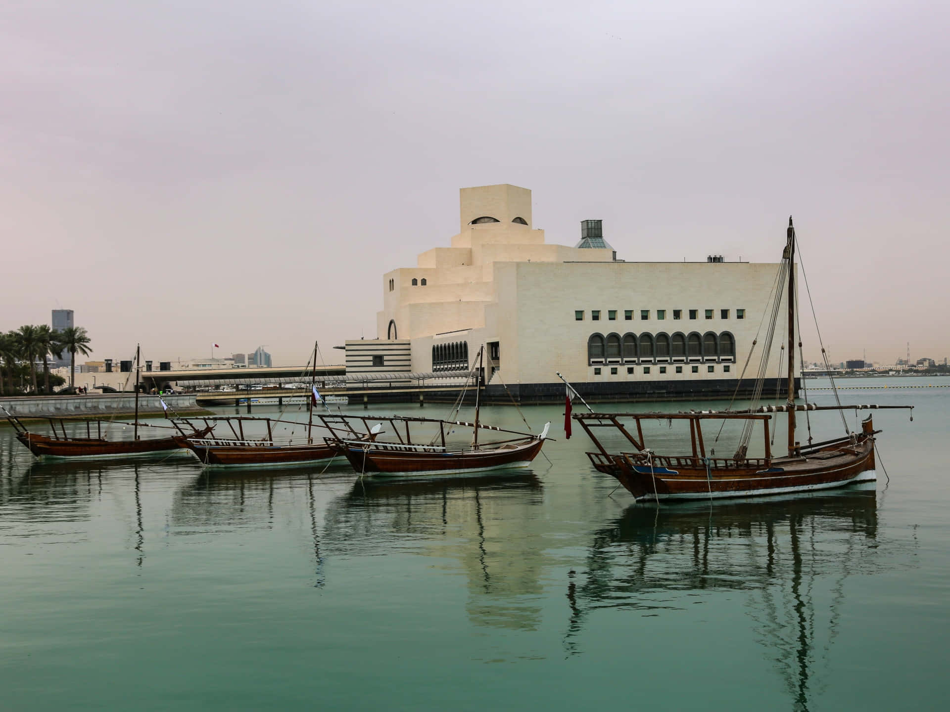 Spectacular View Of Boats Approaching The Museum Of Islamic Art Wallpaper -