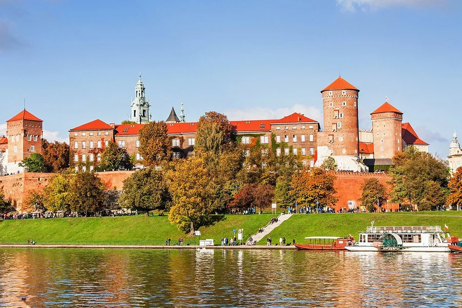 Majestic View Of Wawel Castle From The Vistula River Wallpaper -