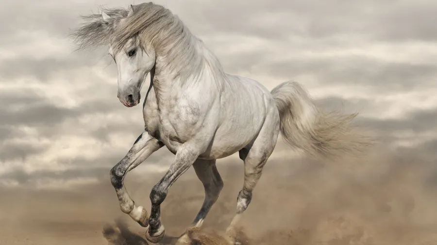 Galloping White Horsein Desert Dust Wallpaper -