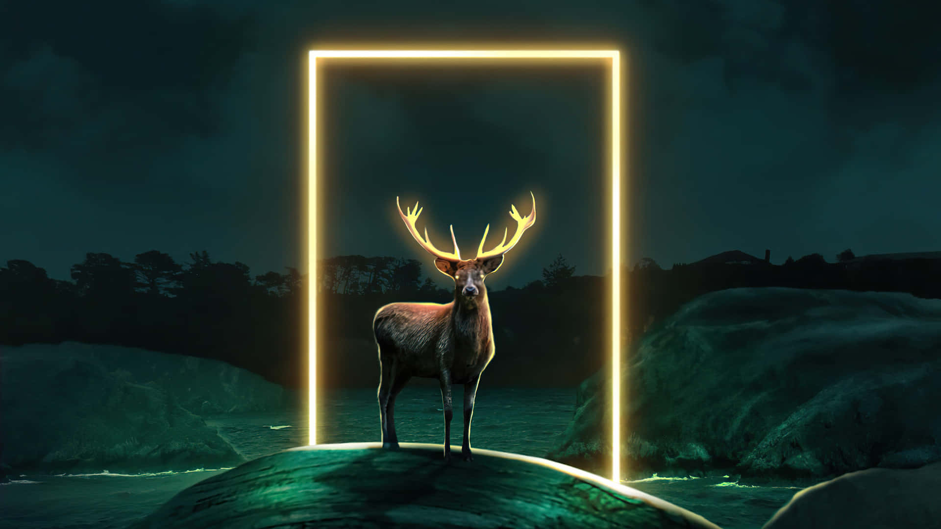 Majestic Nighttime Deer Scene Wallpaper -