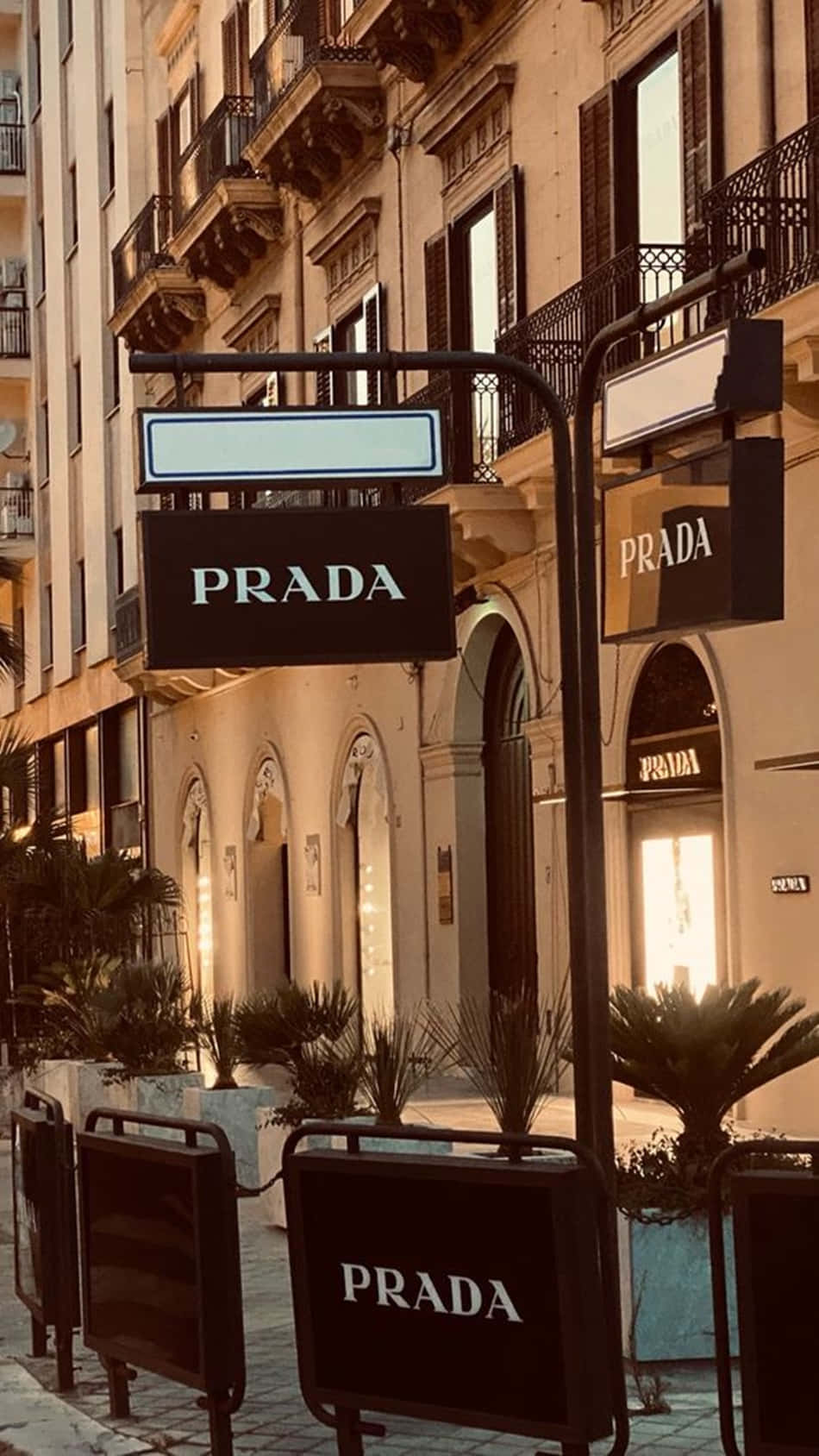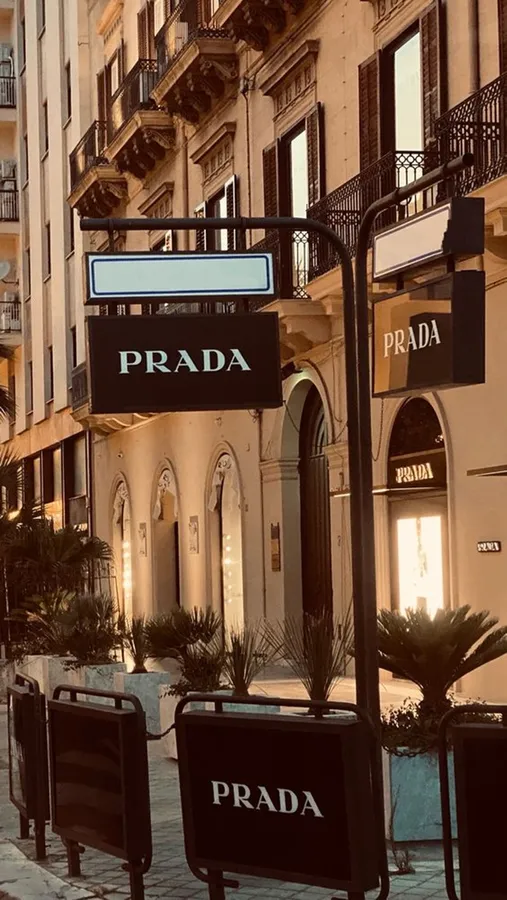 Prada - A Mirrored Building With A Sign Wallpaper