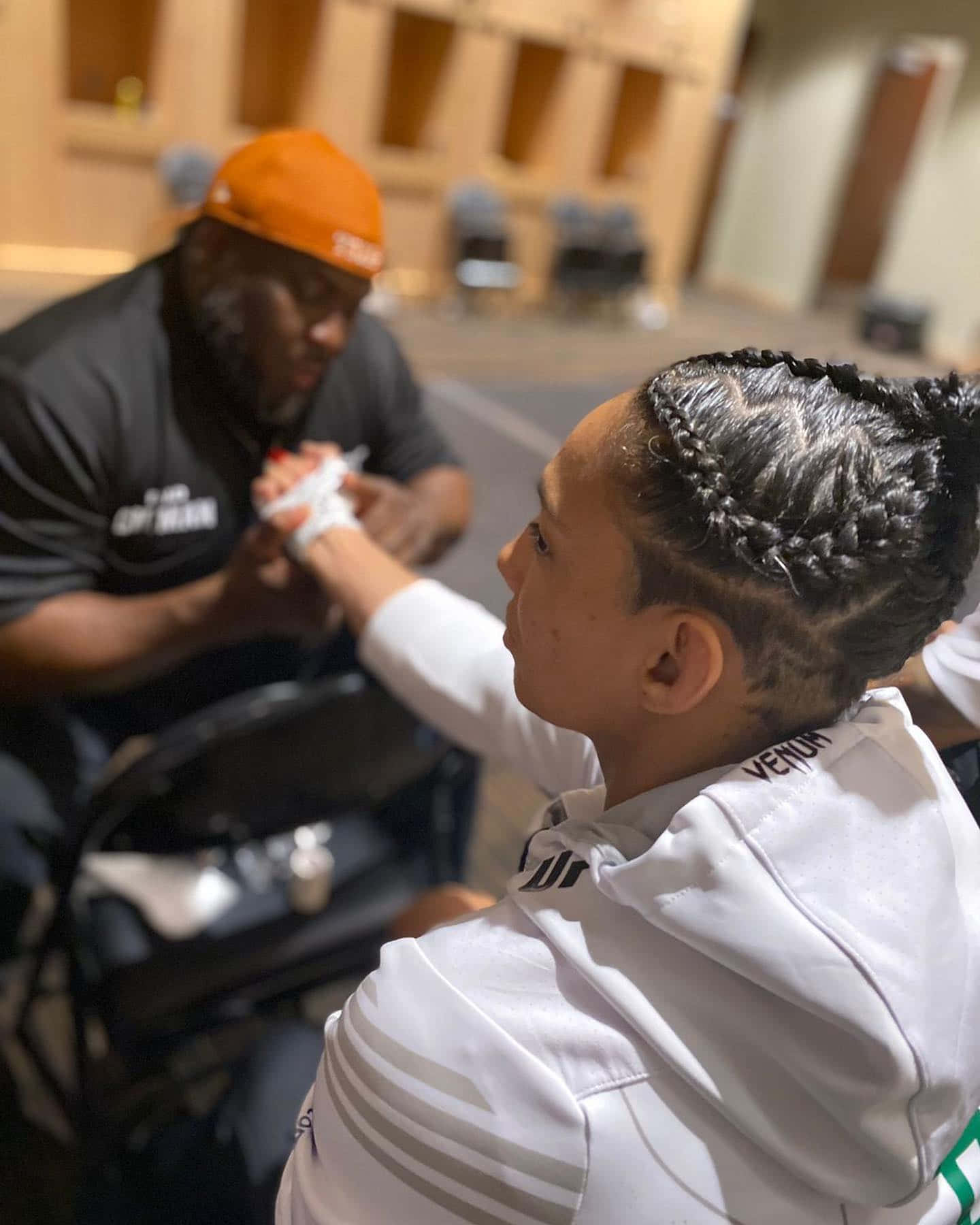 Man Wrapping Hands Of Taila Santos Wallpaper