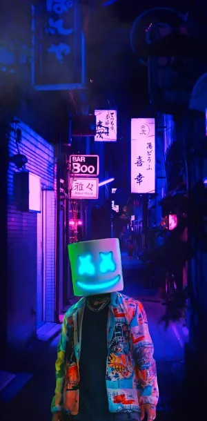 Image Marshmello Appears In Neon Brightness On Iphone Wallpaper -