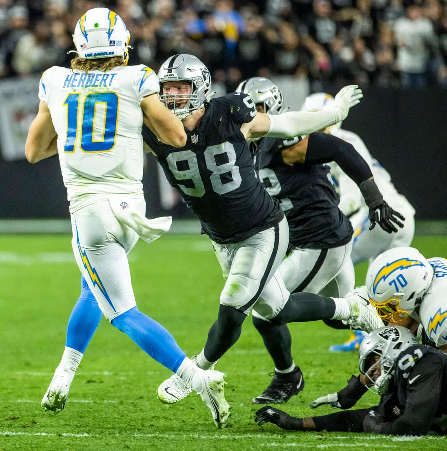 Maxx Crosby Tackling Qb Justin Herbert Wallpaper