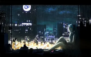 Melancholic Anime Girl Looking At The Rain Wallpaper