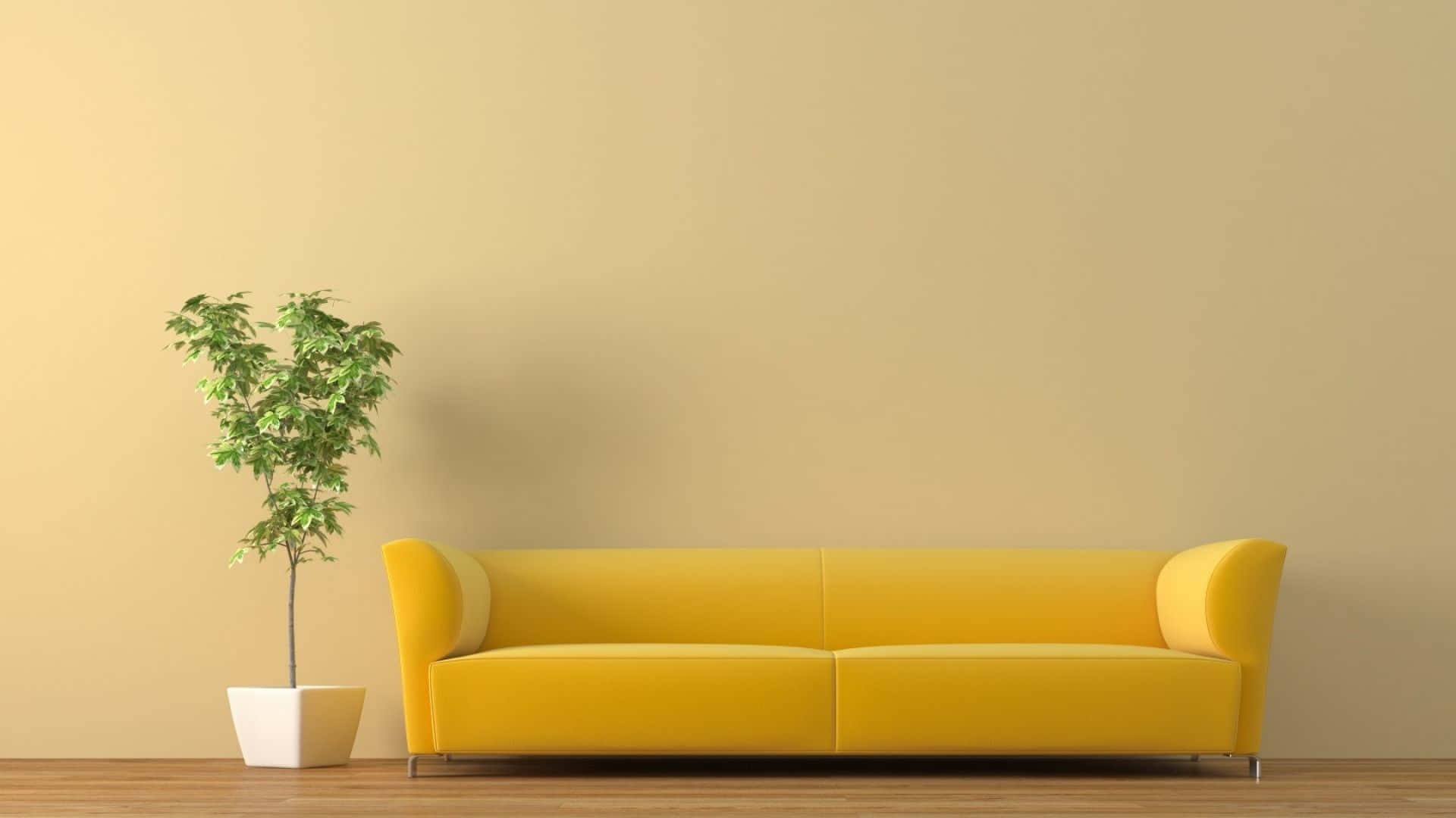 Elegant Yellow Couch Against A Floral Accent Wall Wallpaper -