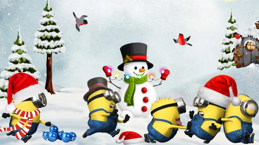 Related Minions Christmas Celebration Snowy Scene Wallpaper