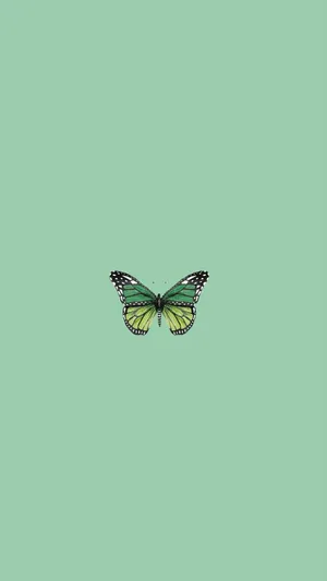 "elevate Your Mood With This Vibrant Mint Green Aesthetic With A Delicate Yellow-green Butterfly." Wallpaper -