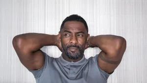 Idris Elba With Blurry Crowd Backdrop Wallpaper -