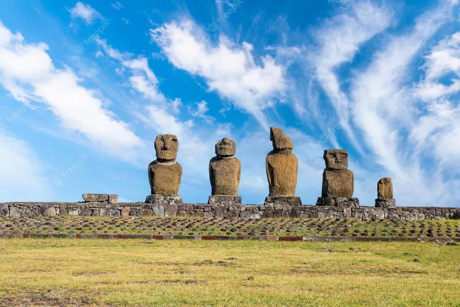 Majestic Moai Statues At Ahu Tongariki Wallpaper -