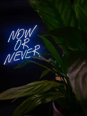 "now Or Never" Neon Blue Iphone Wallpaper -