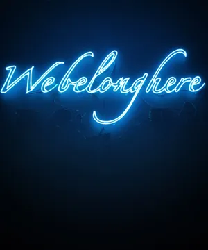 "we Belong Here" Neon Blue Iphone Wallpaper -