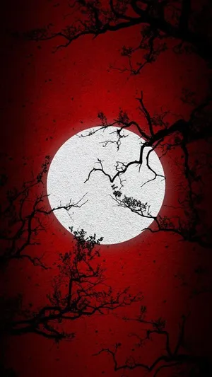 A Castle With A Red Moon In The Background Wallpaper -