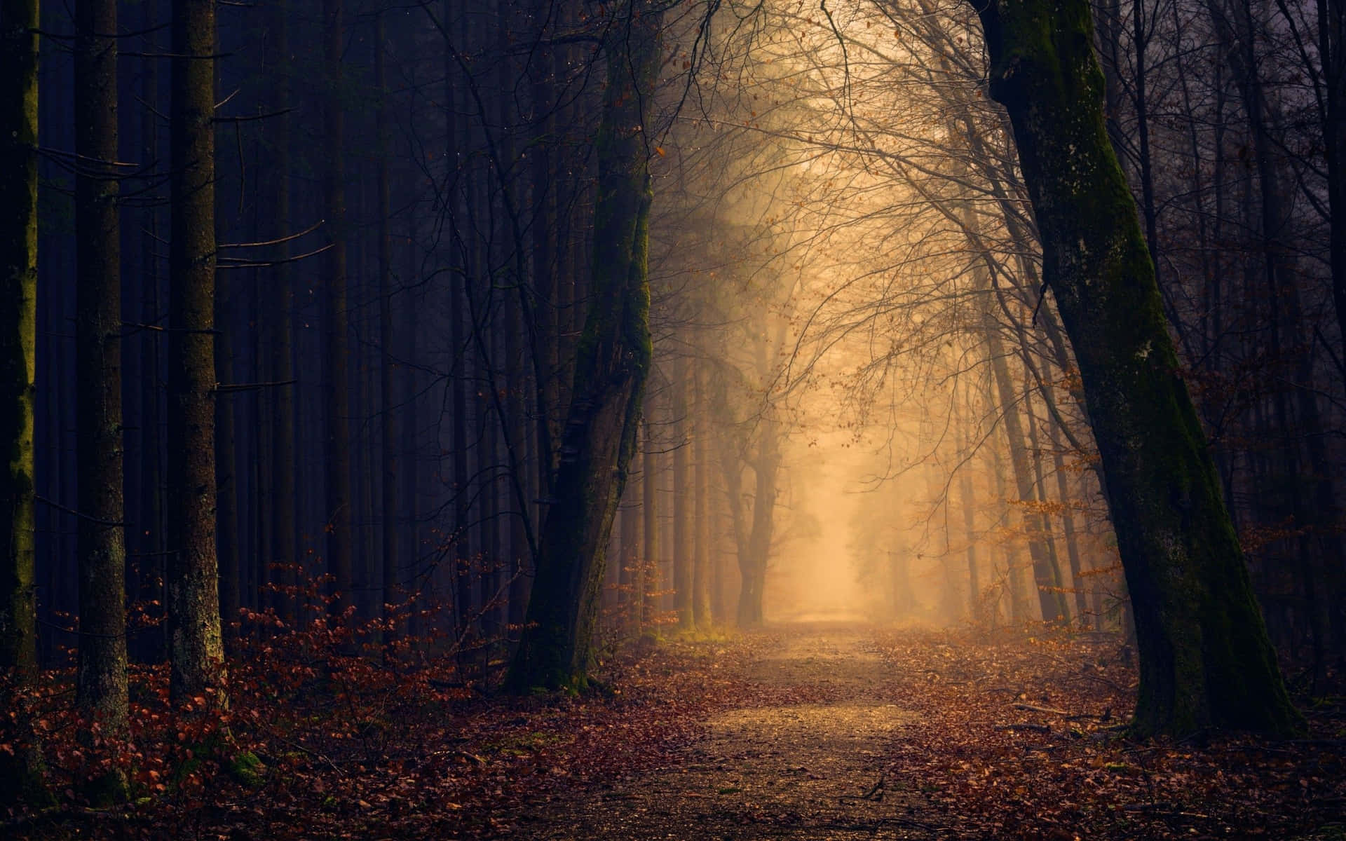 Mysterious_ Forest_ At_ Dusk Wallpaper -