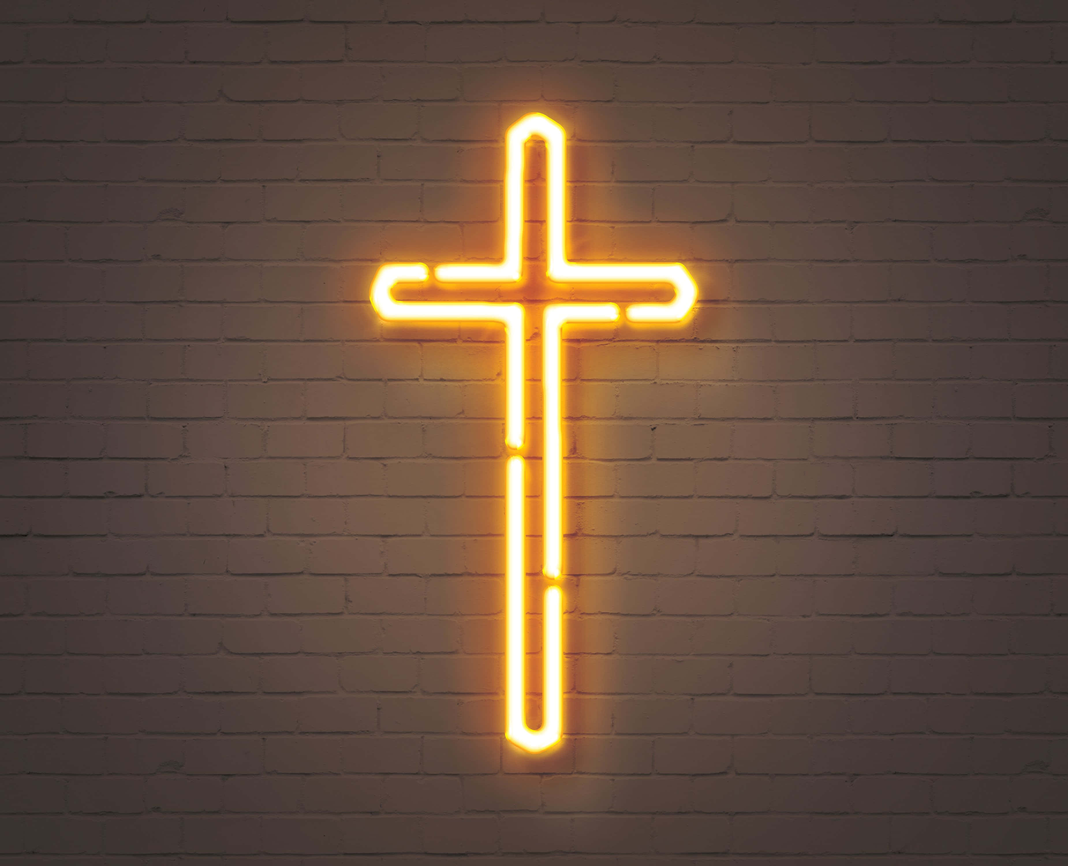 Find Hope In The Darkness With A Neon Cross. Wallpaper -