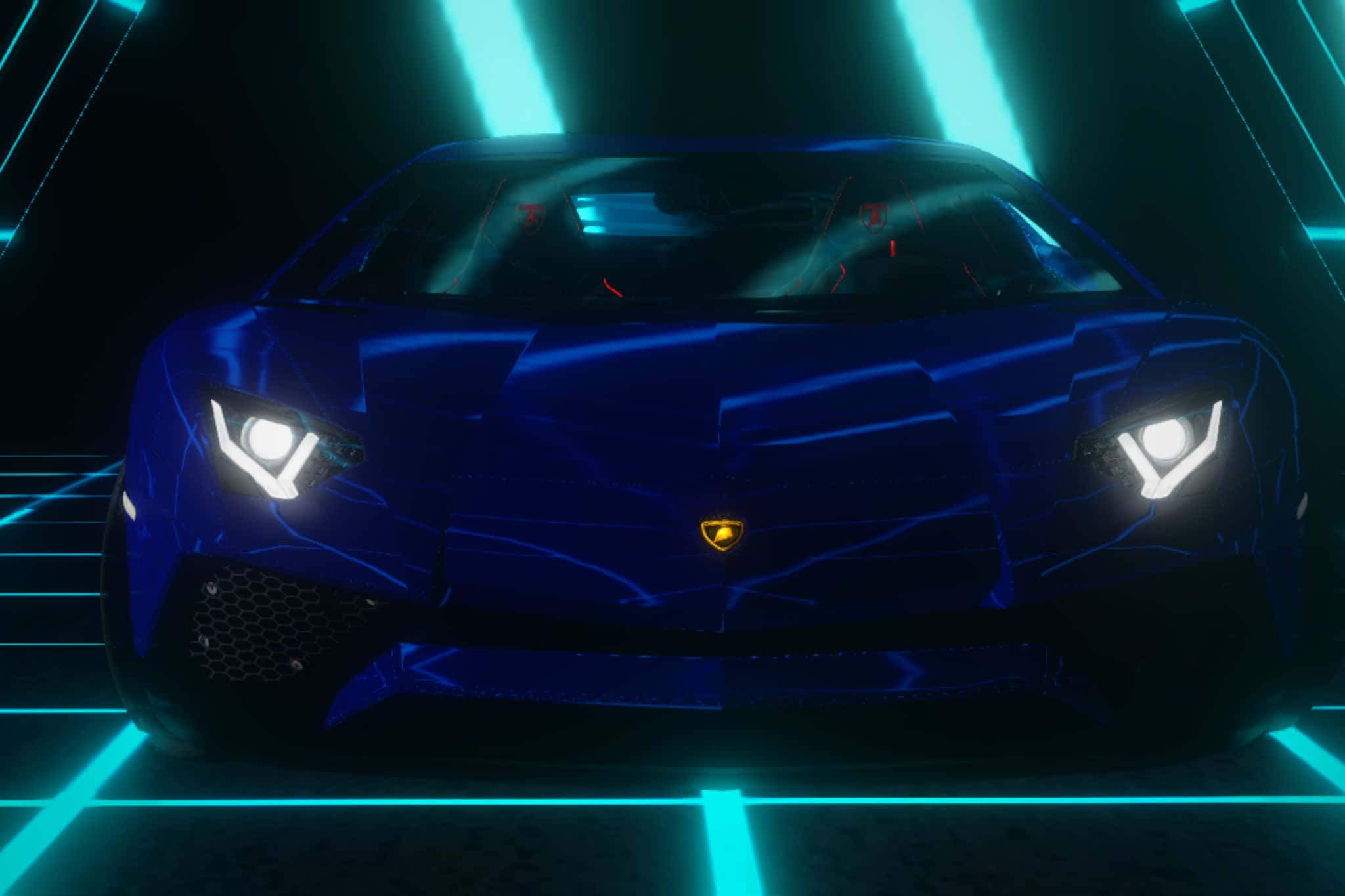 Neon Outlined Lamborghiniin Blue Hues Wallpaper -