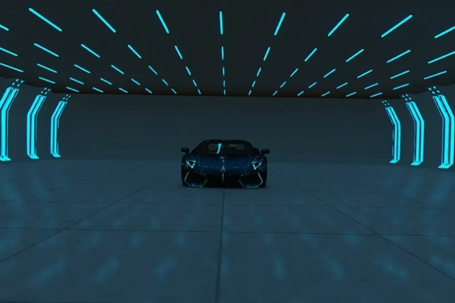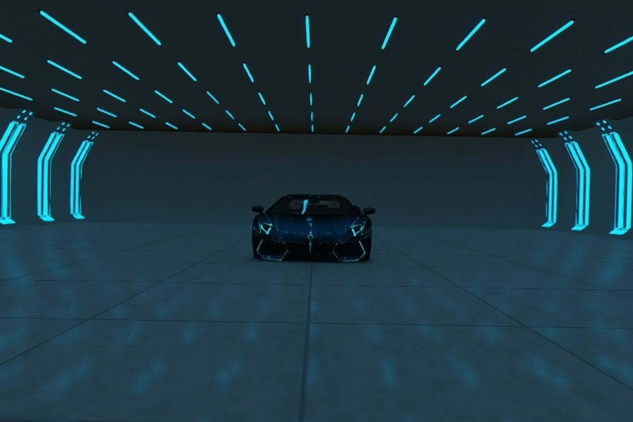 Neon Infused Lamborghini In Futuristic Garage Wallpaper -