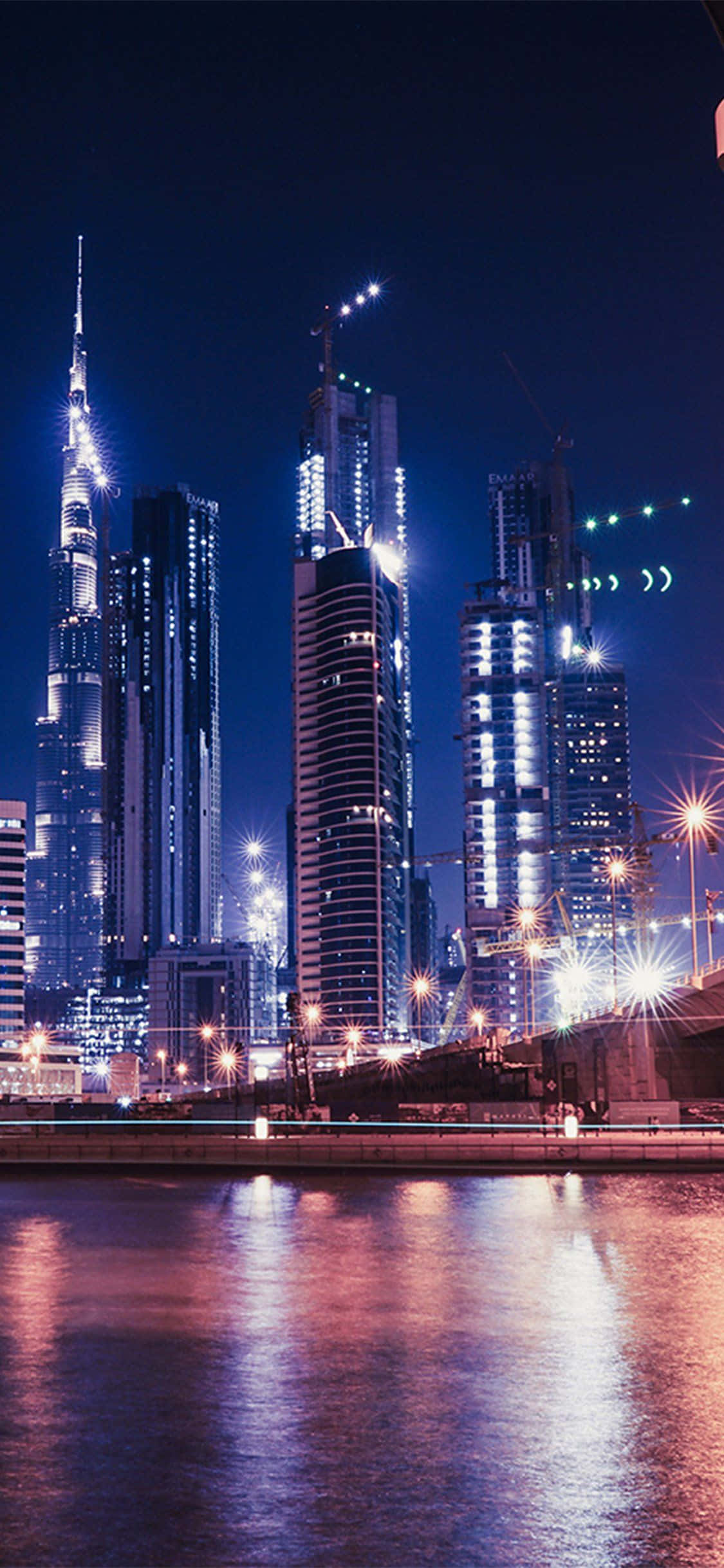 Night View Dubai City Iphone Low Angle Shot Wallpaper